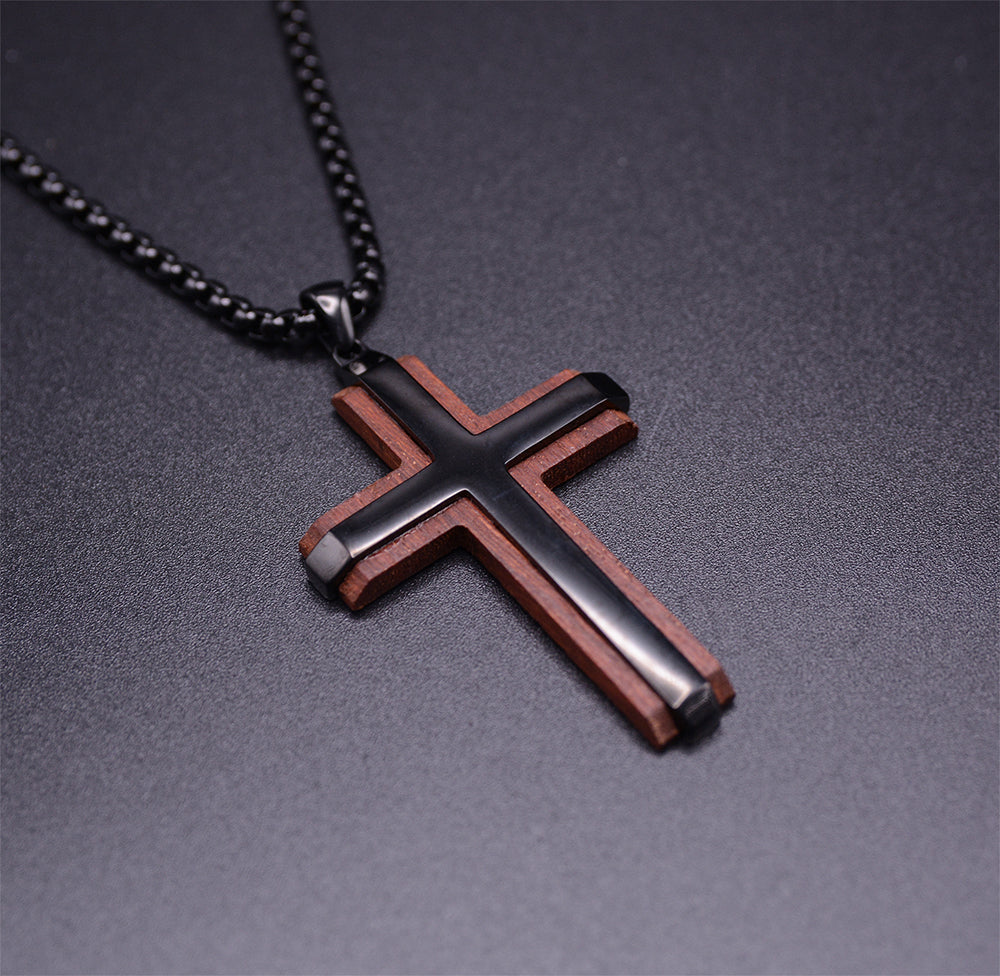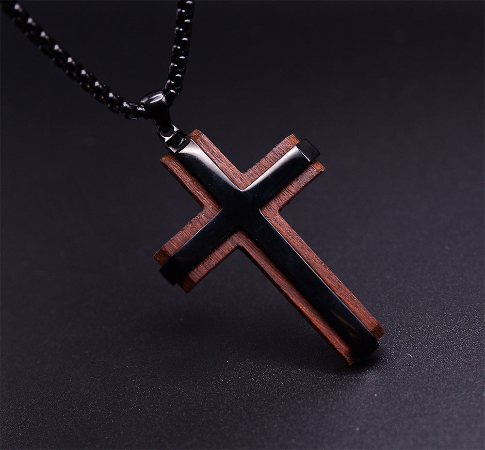 EbonFaith Stainless Steel Men's Cross Necklace with Ebony Wood