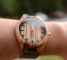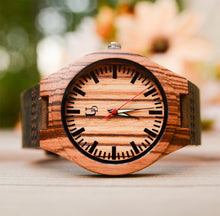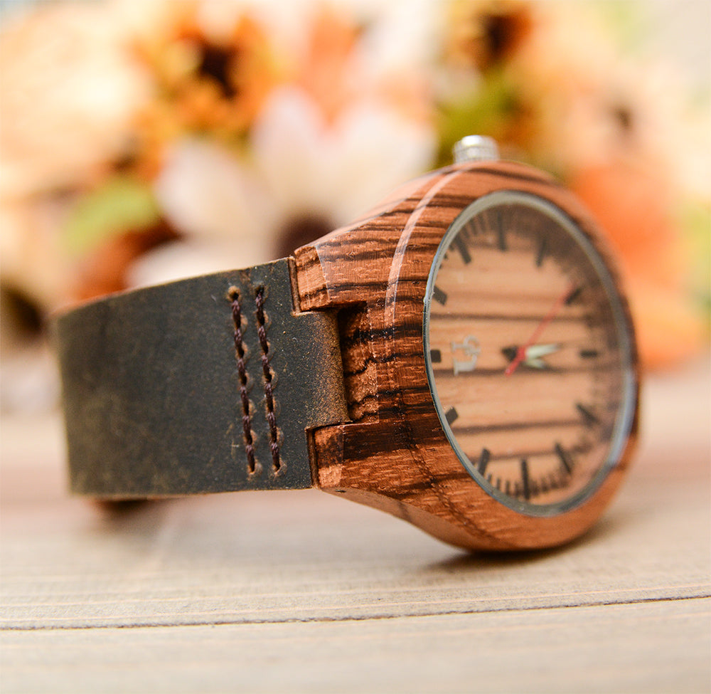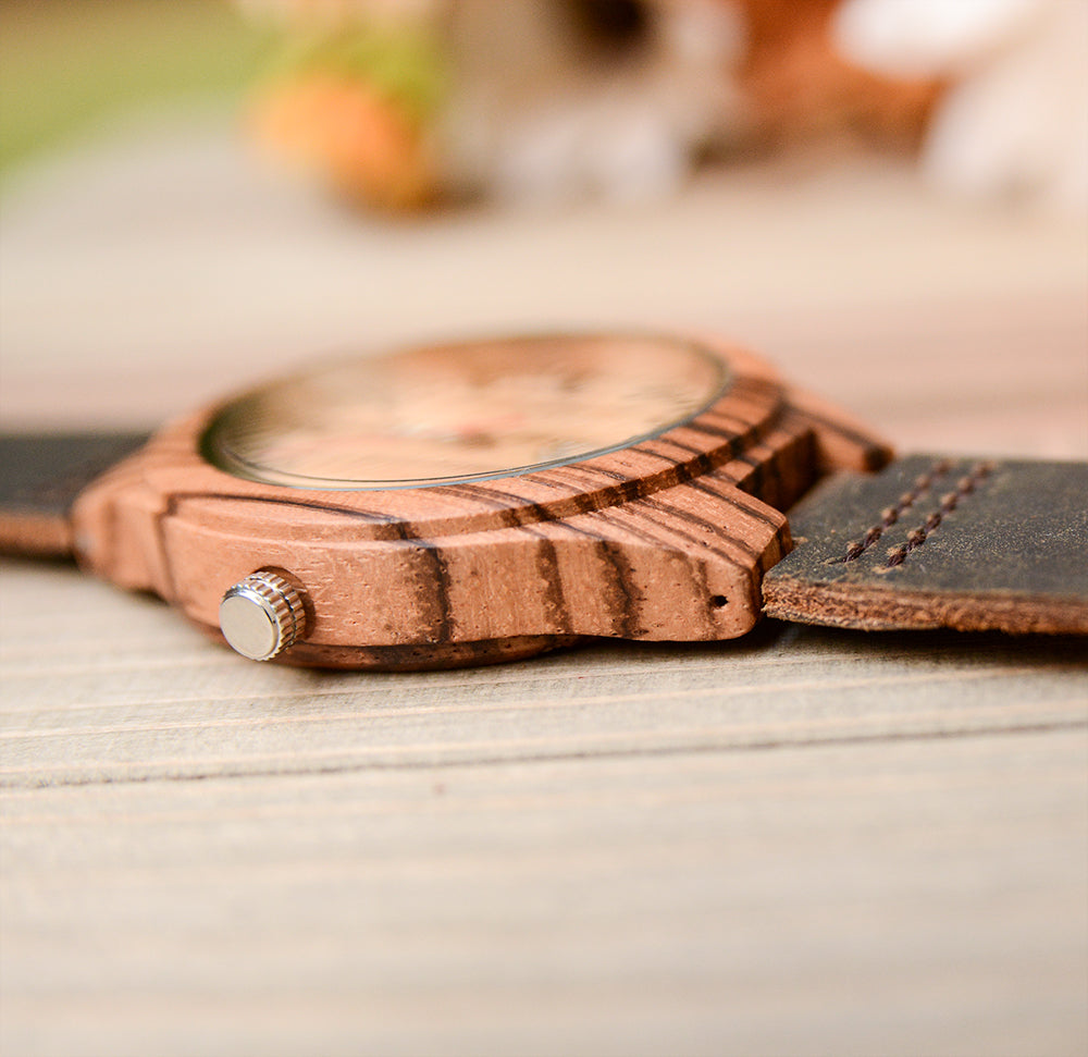 This exotic zebra wood face watch with genuine leather band is made of 100% Real Natural Zebra (RECLAIMED) WOOD Wrist Watch.The wood color makes it simple and easy to match with all the outfits. It comes with nice watch box.