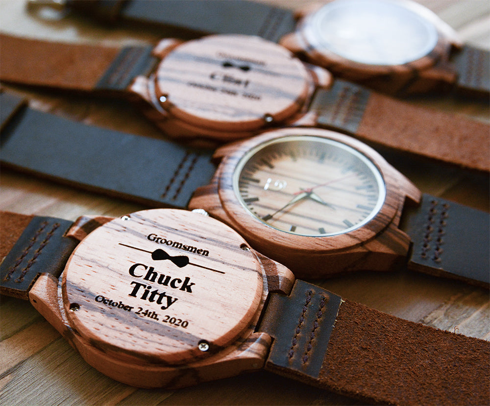 Engraved Wood Watches For Groomsmen With Premium Leather Band