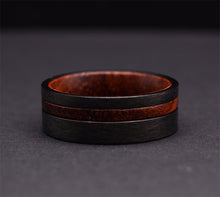 Mens Black Tungsten Carbide Wedding Band Rosewood Inlaid Matt Finished