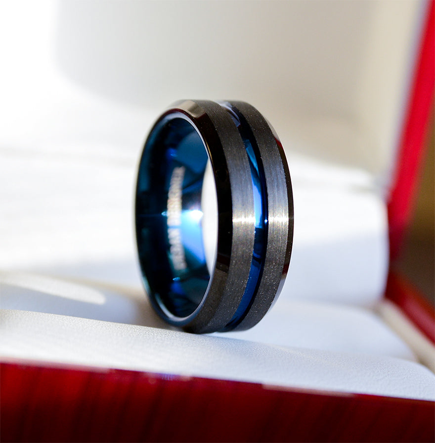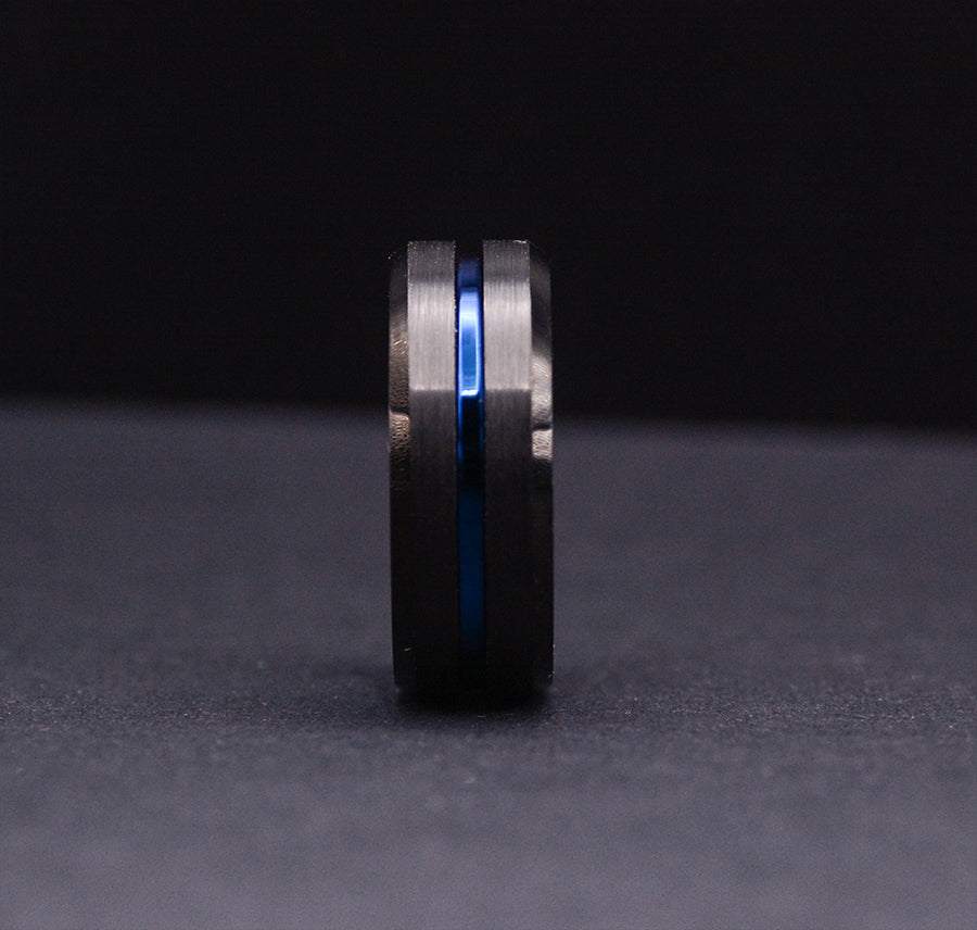 Make a statement with our 8mm Dark Tungsten Wedding Ring for Men, where sophistication meets style. The bold design features a captivating blue color combination, adding a touch of individuality to your wedding band. Crafted for durability and timeless appeal, this ring is the perfect symbol of your commitment.