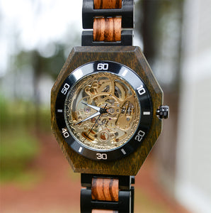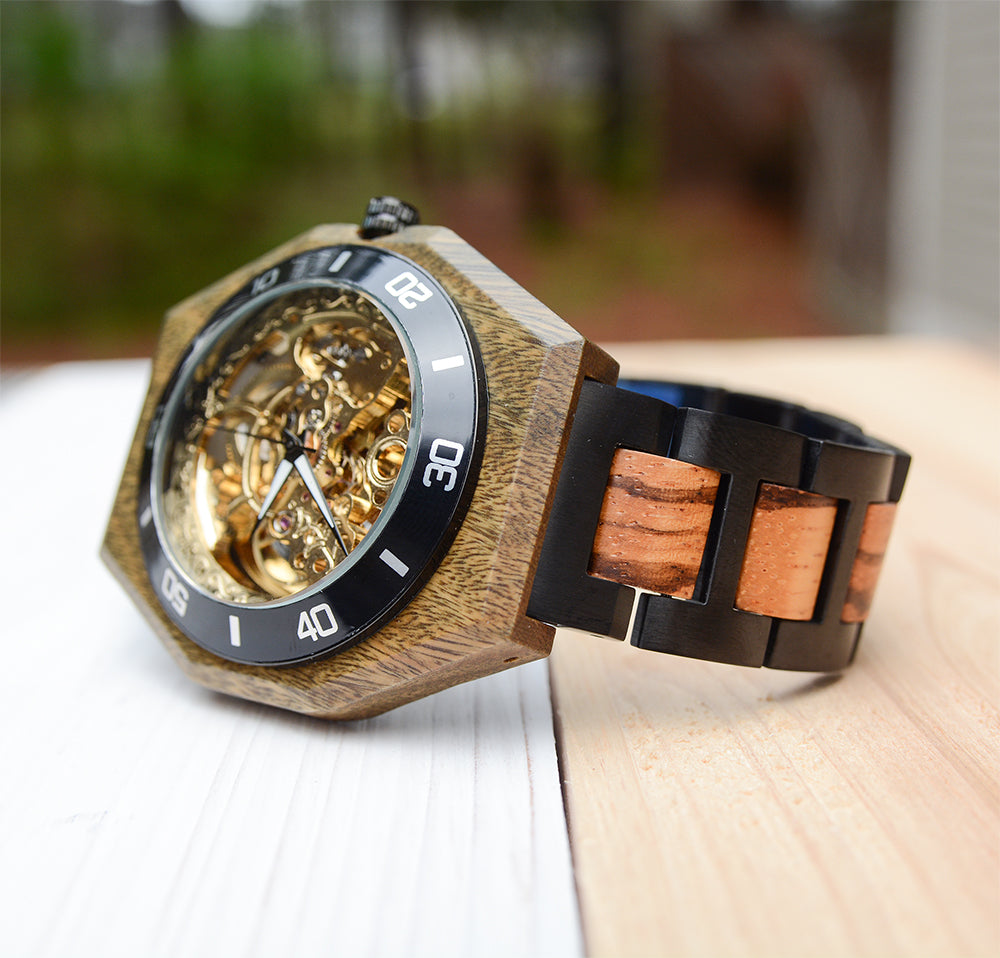 100% Real Vera (RECLAIMED) WOOD Automatic Mechanical Watch For Men (No Battery Needed). Our ultra premium wooden men's watch is made out of 100% natural wood (with the exception of the dial, the gears & the folding clasp).