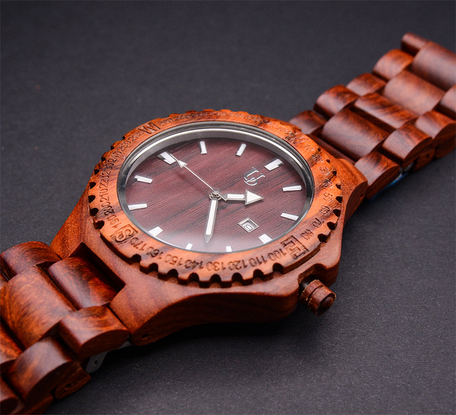 100% Real Natural Red Sandal (RECLAIMED) WOOD Wrist Watch. Each Unique Watch is Handcrafted by a Professional Watchmaker. You'll be amazed when you hold a wood watch in your hand or wear it on your wrist since it is really comfortable. High Quality, Luxury Fashion and Stylish with Japanese Movement. The Wood color makes it Simple and Easy to Match with all your Outfits. Great for Casual or Business events.