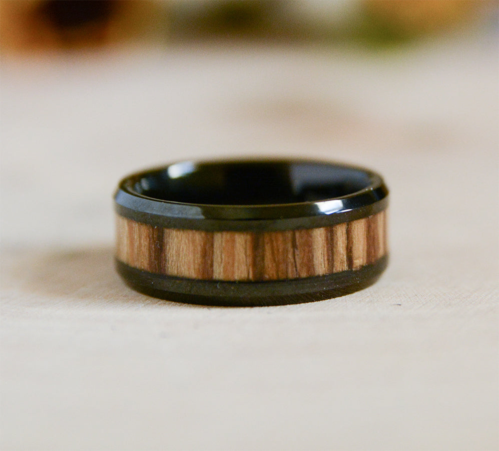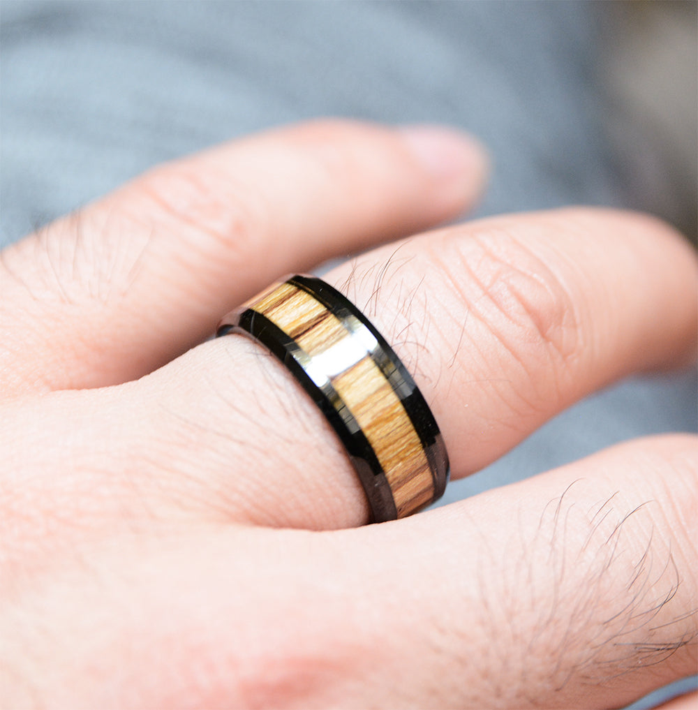 - Made of Quality Tungsten & Zebra Wood Inlay, Solid and Durable.