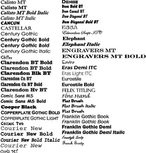 For fonts option, we suggest you google "fonts" and let us know which one would you like to use. Engraving options please click here.