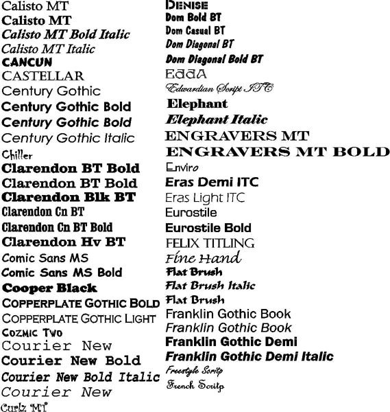 For fonts option, we suggest you google "fonts" and let us know which one would you like to use.