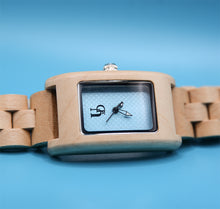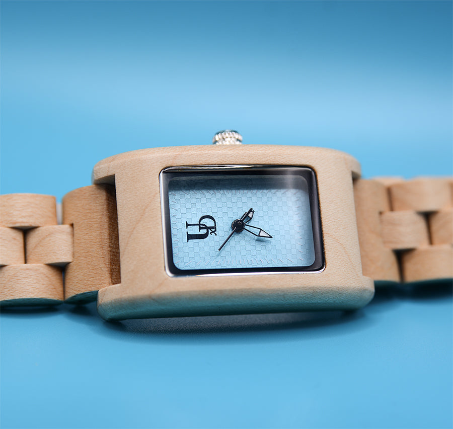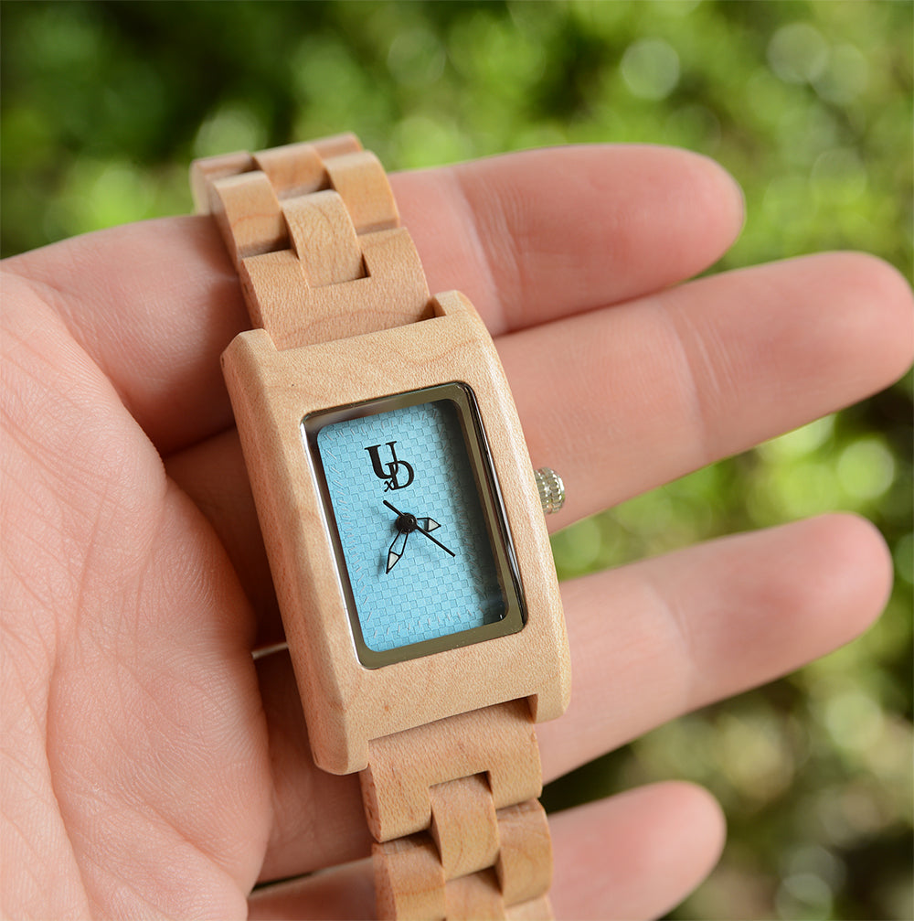 UXD Elegant Turquoise Dial Rectangle Square Natural Wooden Watch For Women