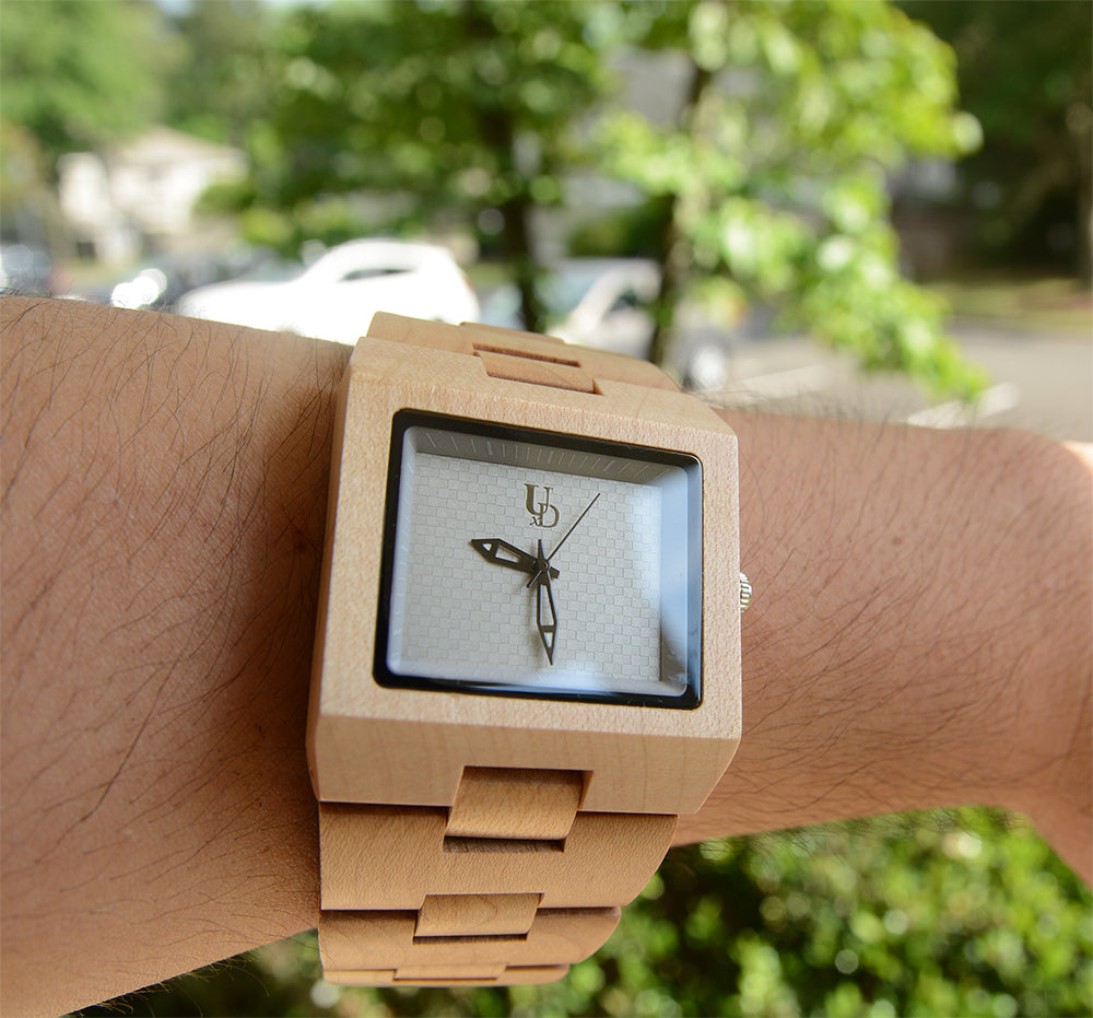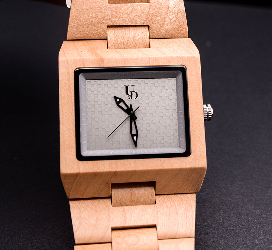 UXD Mens Minimalist Engraved Natural Wood Watch With Square Gray Face
